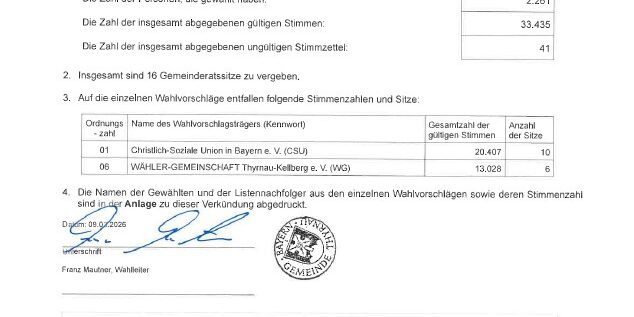 Verkündung des vorläufigen Ergebnisses der Wahl des Gemeinderats am 8. März 2026